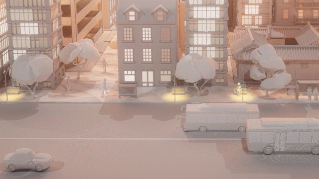 A poetic recreation of Jongno’s evening commute, crafted entirely in paper.